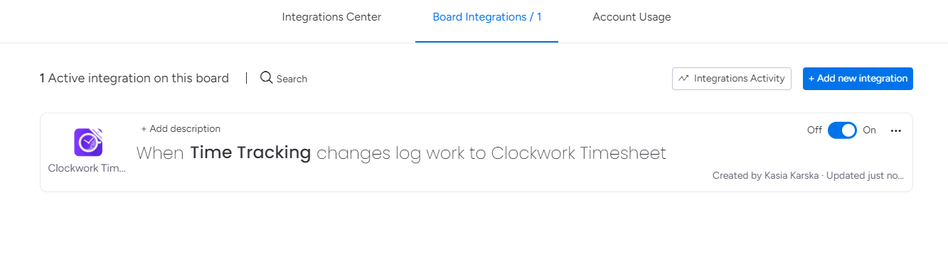 Once the integration is added, you will see that is active in your Board Integrations.