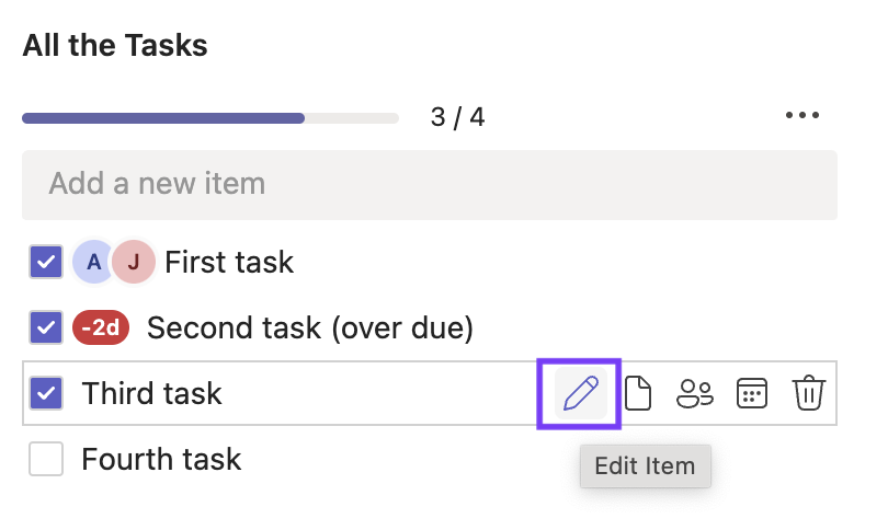 To assign an item to a member or members of your team, click on the person icon and select the appropriate team member(s).