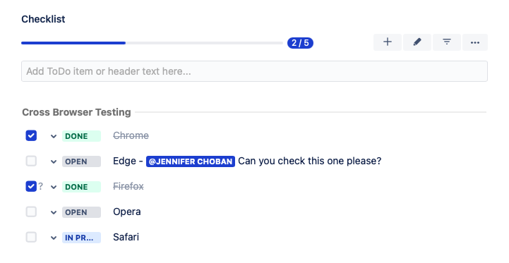 Instantly create checklists on Jira issues to capture QA, Definition of Done or Acceptance Criteria.