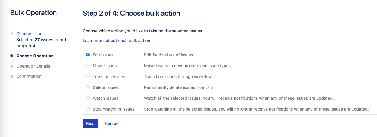 Select Edit issues as the operation and click Next.