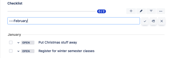 Alternatively, you can create a header by typing the header text, proceeded by three dashes --- into the checklist input field.