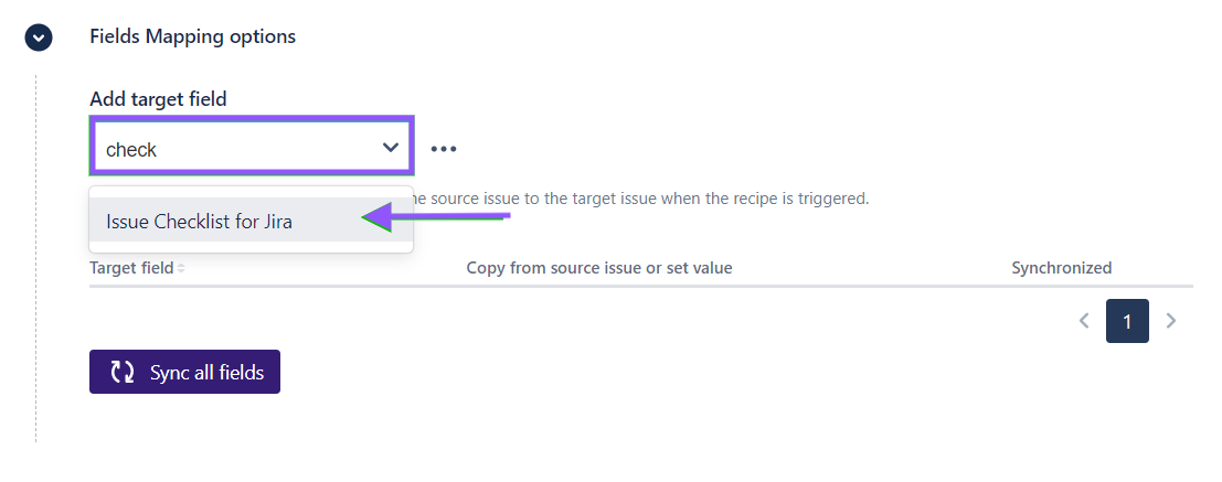 Click on the "..." button at the right of the Add target fields option, and select Checklists for Jira.