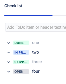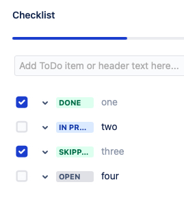 Checklists for Jira lets you mark checklist items with a status dropdown or both.
