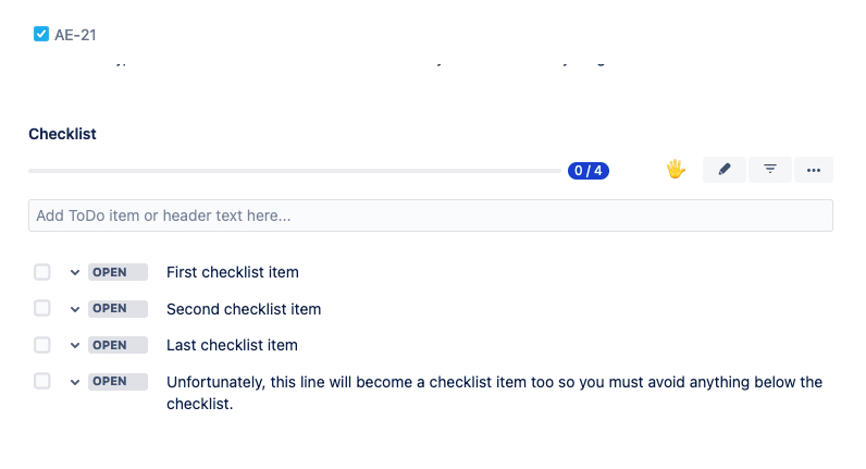 Unfortunately, this line will become a checklist item too so you must avoid anything below the checklist.