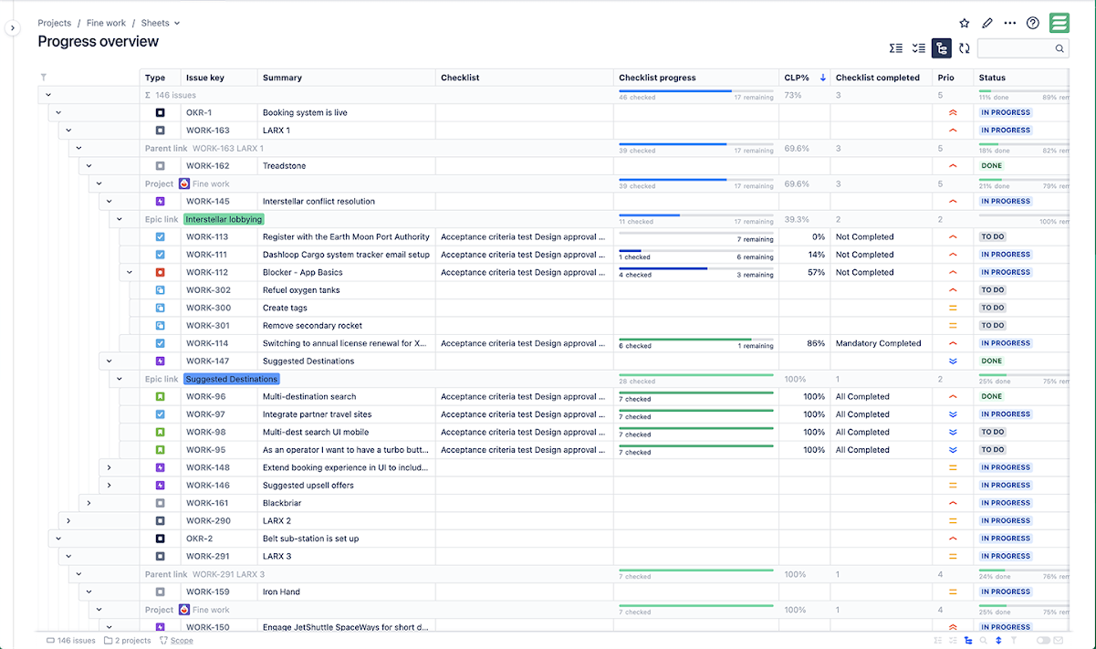 JXL for Jira is a work item editor/organizer that lets you view, sort, and edit work items in customizable spreadsheets within Jira. Users can create and inline edit work items, copy and paste fields in bulk, group and structure work items in custom hierarchies, and sum up field values across groupings and hierarchy levels.