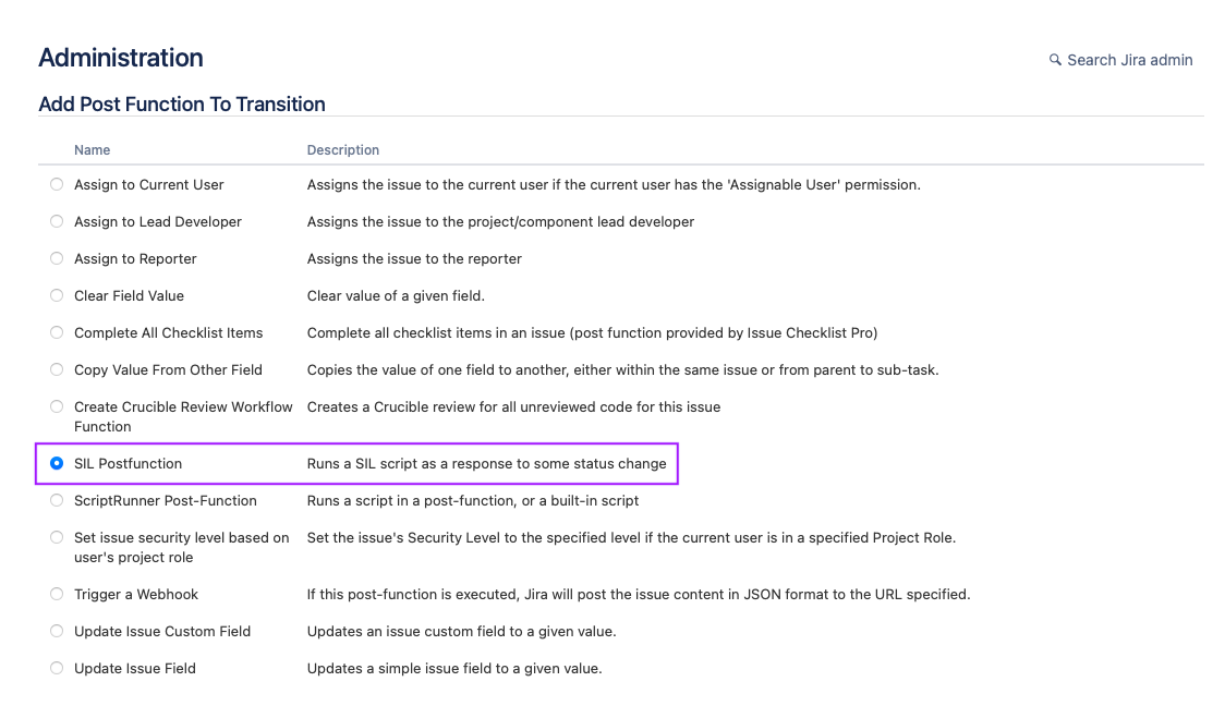 Confirm that the new post function is on the list. (It will appear as the first item on the list.)