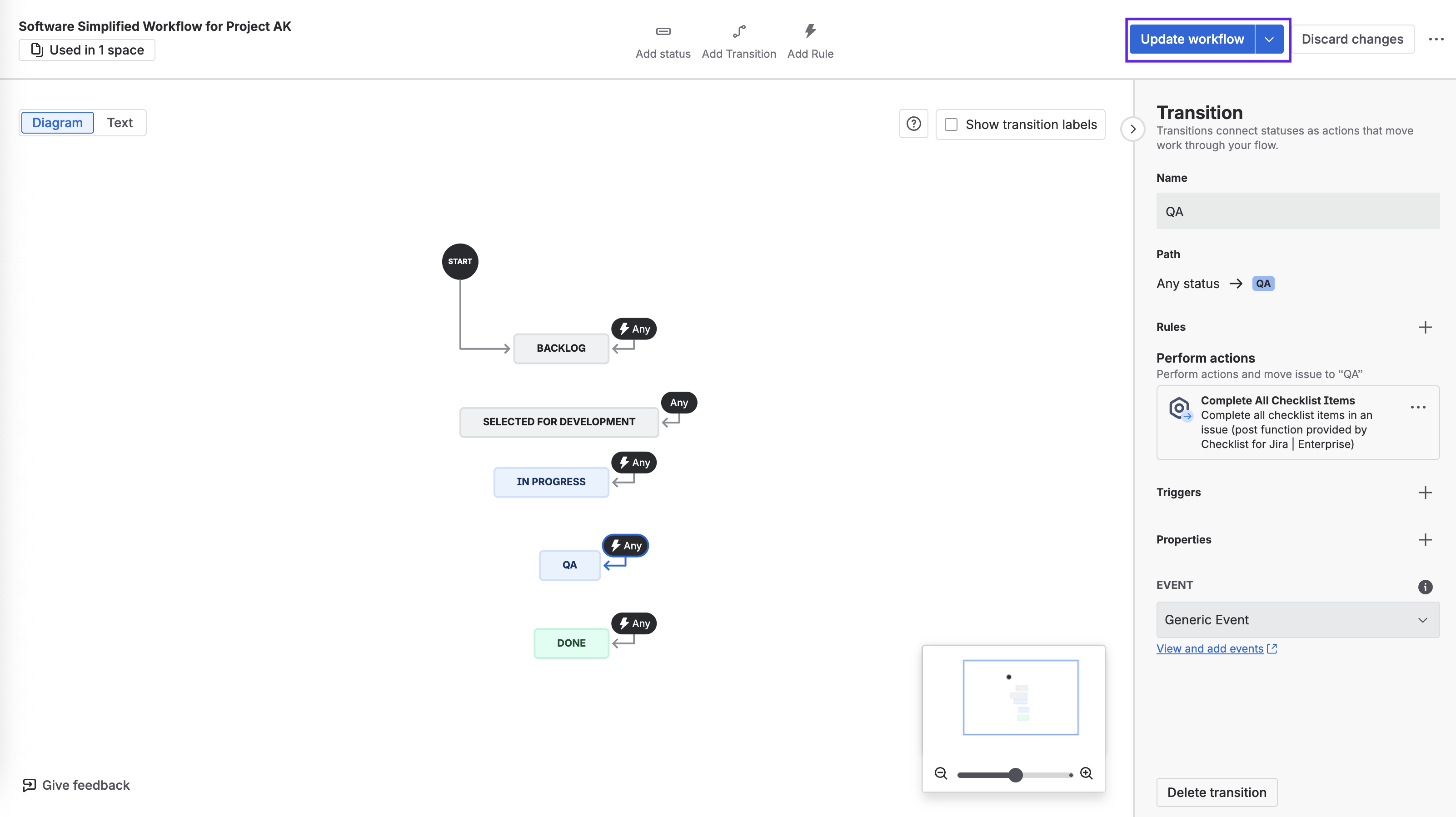 Click Update workflow to save the changes.