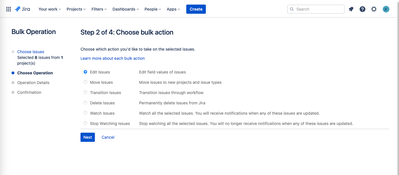 Select Edit work items and click Next.