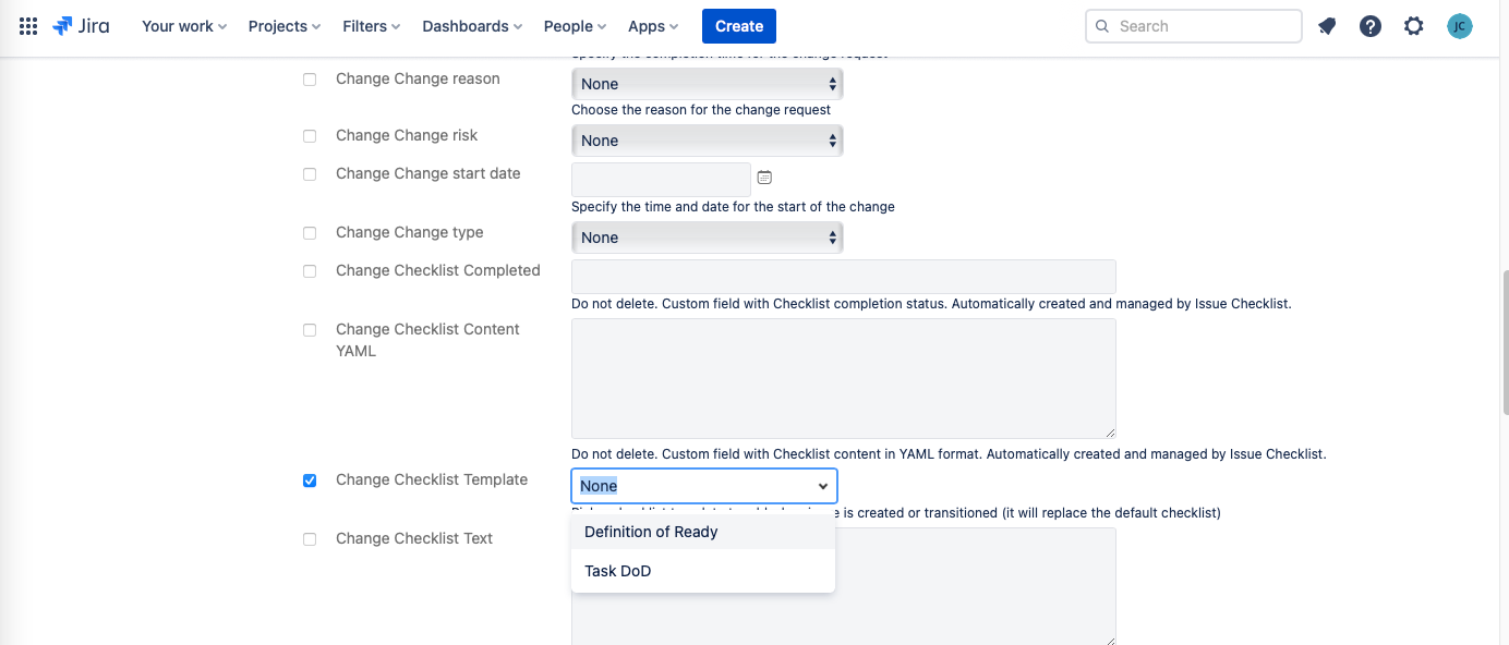 If a Checklist Template has been recently added, modified, or deleted, the options in the Checklist Template dropdown field on Jira work items may not reflect the most recent changes. It can cause the template feature to malfunction (i.e. when the template is selected in the Checklist Template field, the corresponding checklist won’t load). To address this: