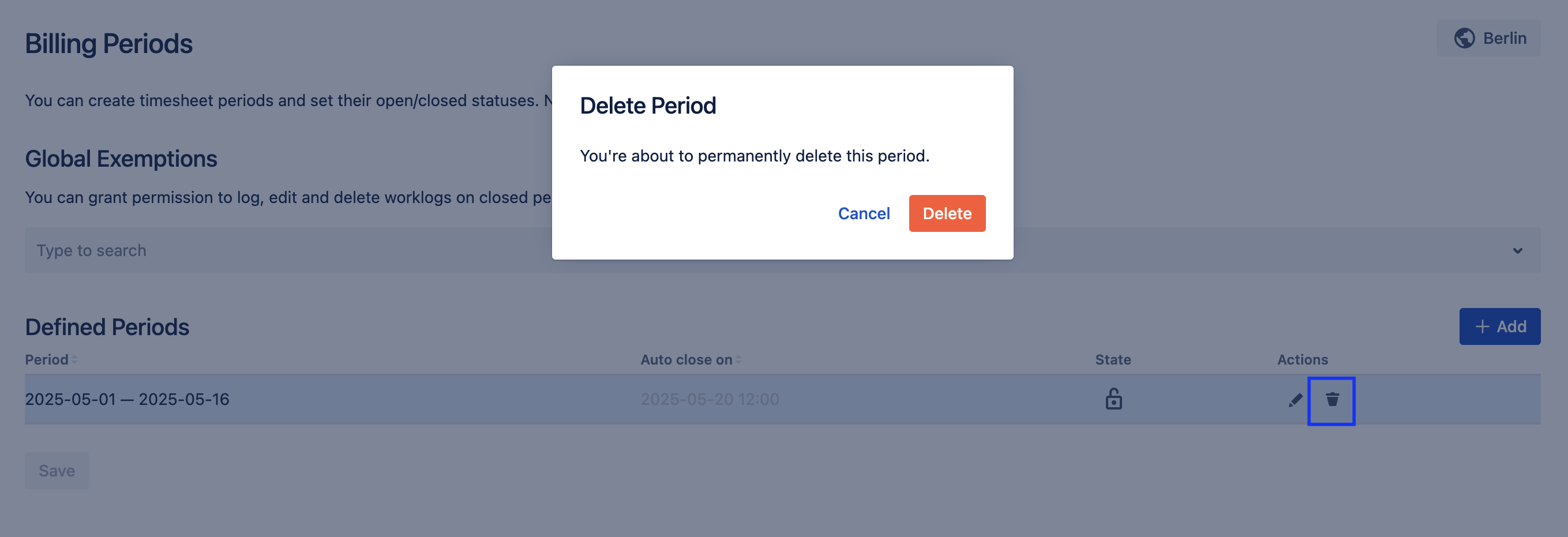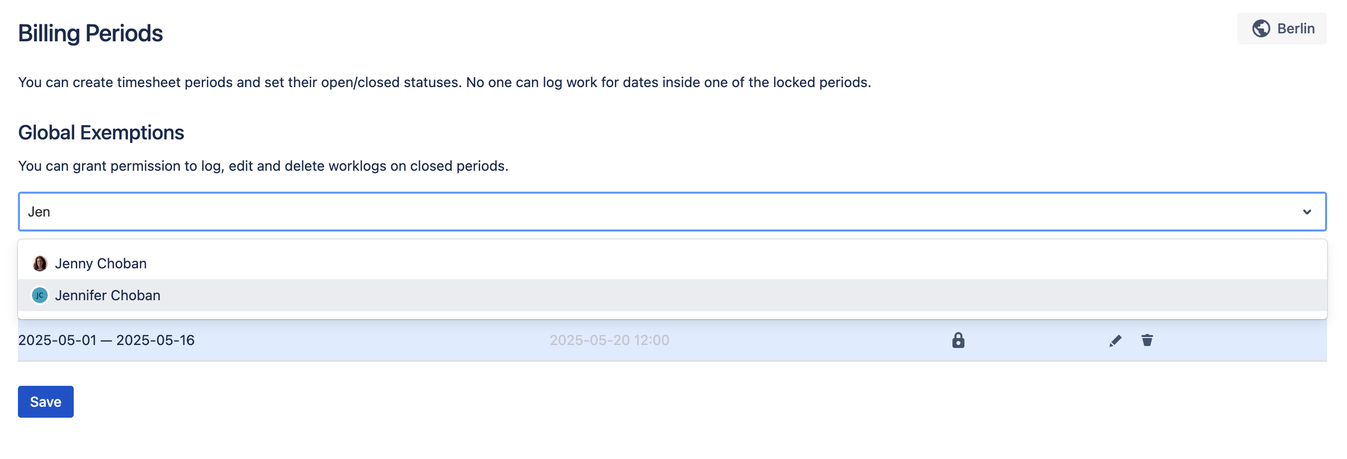 Billing Periods give you the ability to configure a timeframe and define a point at which users will no longer be permitted to add, edit, or remove worklogs for that timeframe. This is useful for ensuring accurate invoices and payroll.