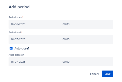 If you want the Billing Period to automatically close (become locked so that users will no longer be able to add, edit or delete worklogs for the Billing Period) on a certain date and time: