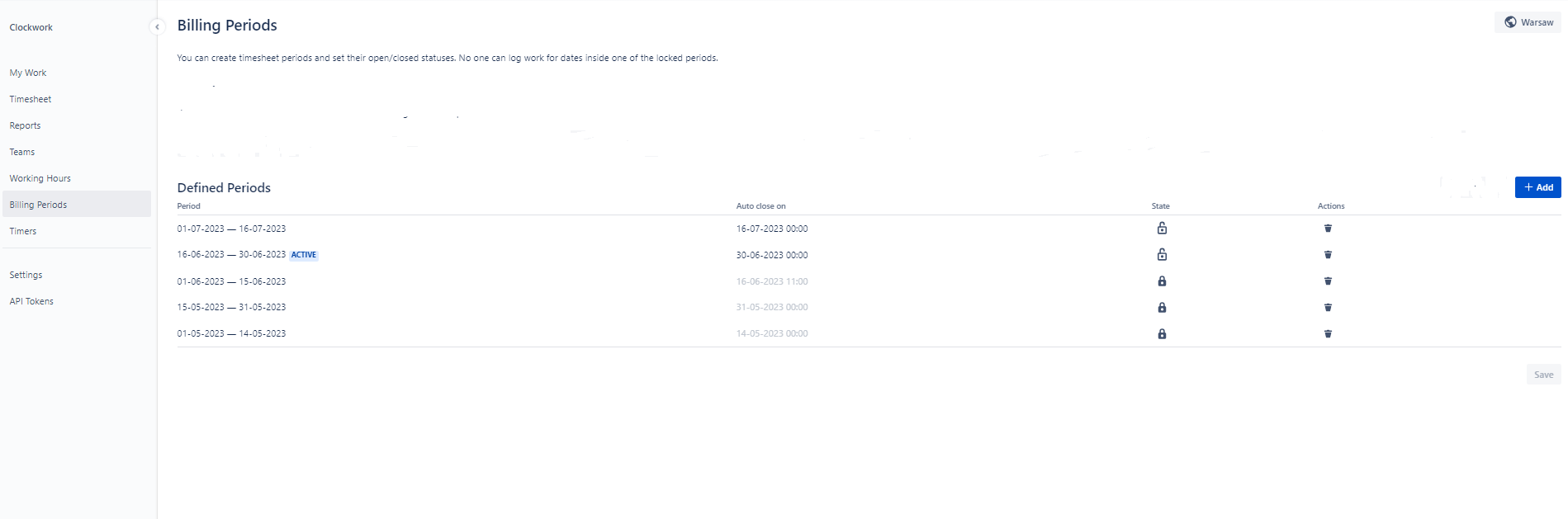 Define how often you want to work on billing and lock adding, editing, or removing worklogs within a locked billing period to ensure that your invoices remains correct.