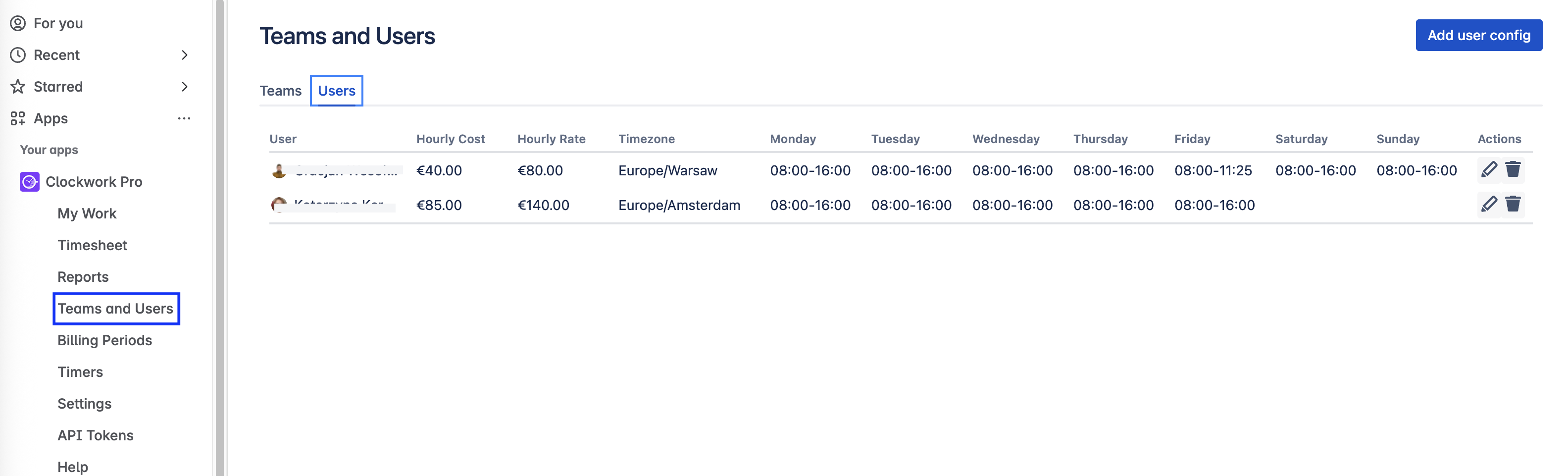 Navigate to Apps > Clockwork > Teams and Users.