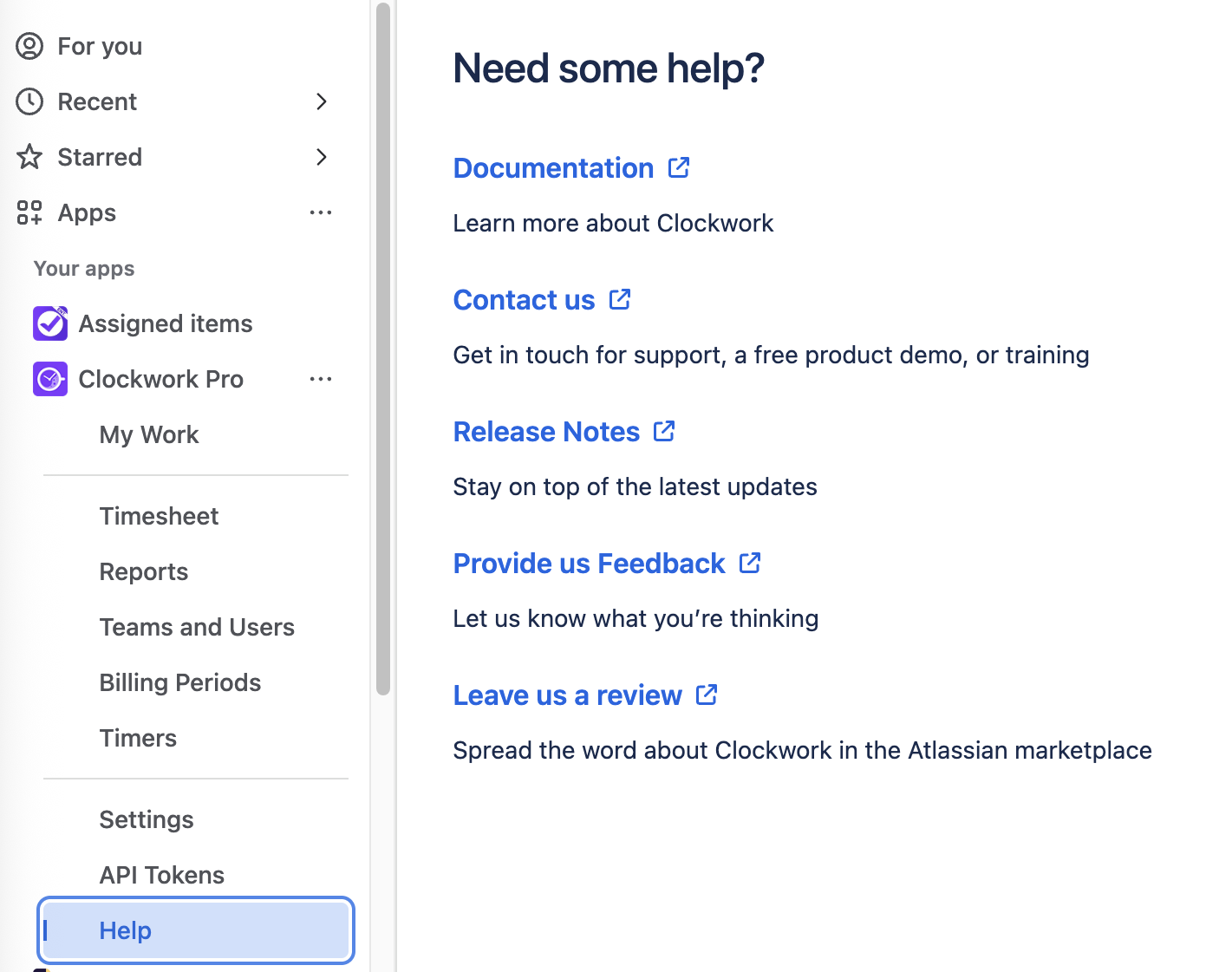Need some help? Or do you want to help us improve Clockwork? Use our Help panel to: