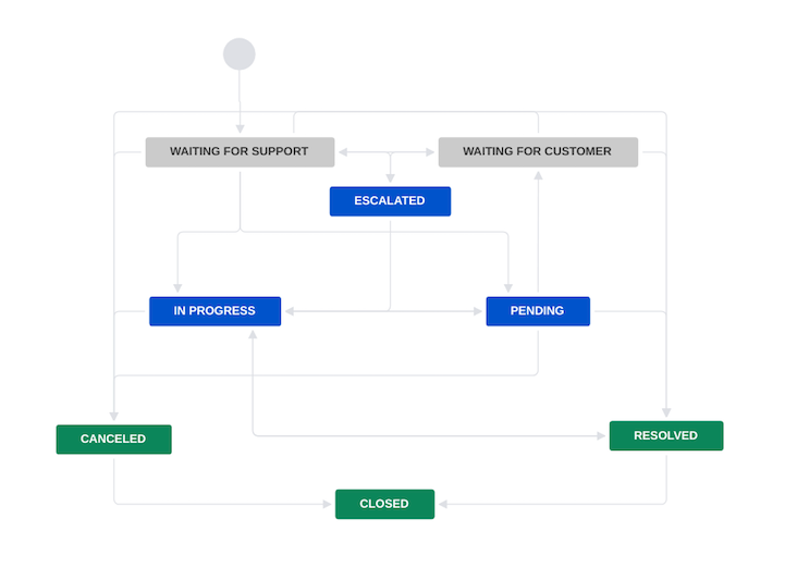 IN PROGRESS – Such as In Progress, Pending Approval, and Escalated