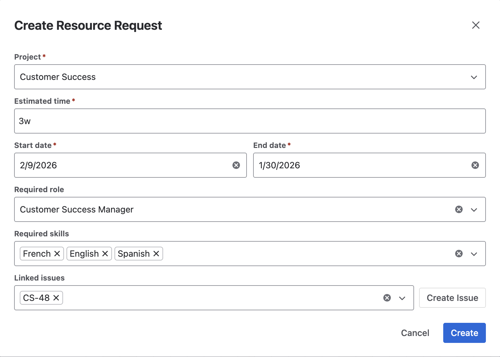 Linked issues – You can link work items to the request, or create new, linked work items by using the Create Issue button.